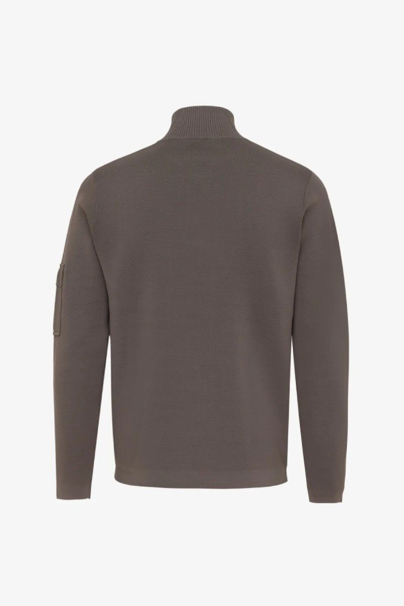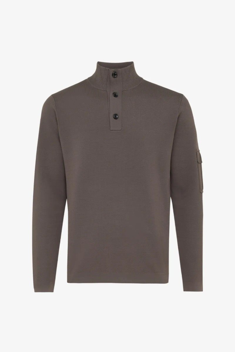 bruine turtle met knopen en een pocket op de linkermouw. Deze trui is gemaakt van de Cool dry kwaliteit. Een technisch, ademend materiaal met veel stretch voor optimaal comfort.