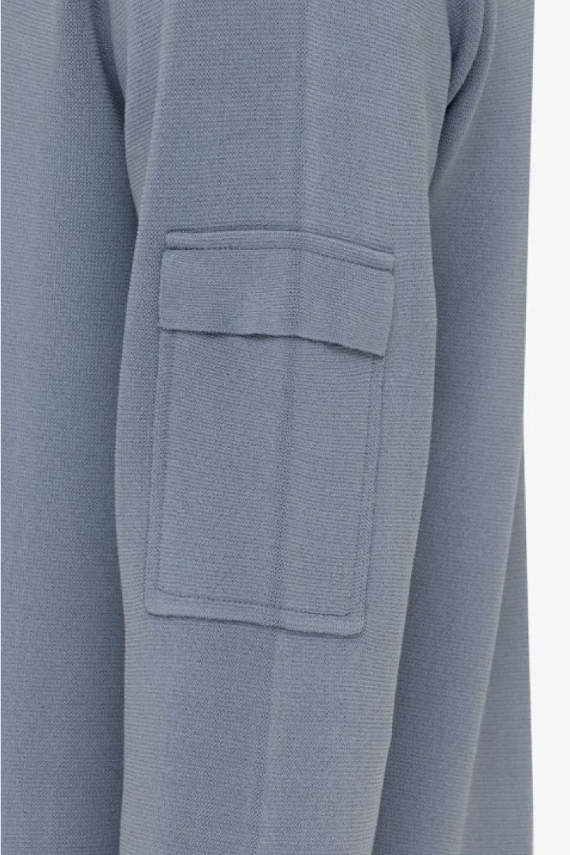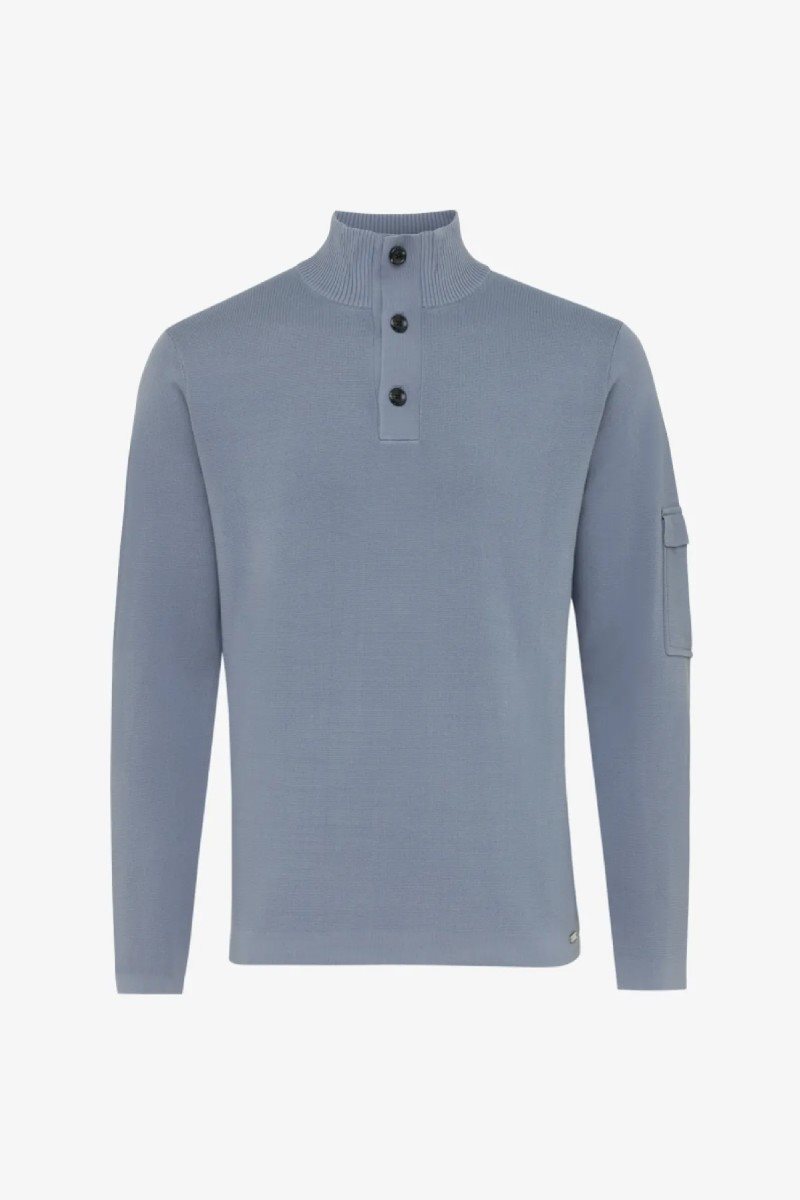 blauwe turtle met knopen en een pocket op de linkermouw. Deze trui is gemaakt van de Cool dry kwaliteit. Een technisch, ademend materiaal met veel stretch voor optimaal comfort.