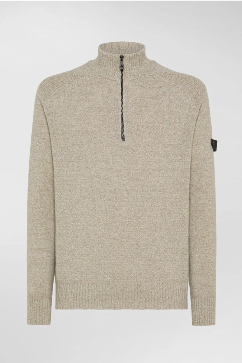Zachte, warme trui met lange mouwen en ronde hals. Gemaakt van gebreide wolmix mouliné, superzacht en warm. De hals, manchetten en zoom zijn afgewerkt met bredere ribboorden dan de rest van de trui. Afneembare logostrip op de arm. Een cleane look die de metropolitaanse sportkleding interpreteert met een jonge en dynamische uitstraling.
