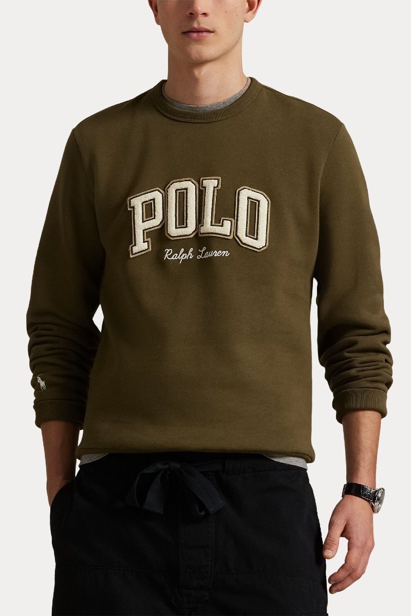 Deze sweatshirt van katoenmix is ??naast het geborduurde Pony-logo voorzien van ons Polo-logo in letterman-stijl applicaties in de kleur groen.